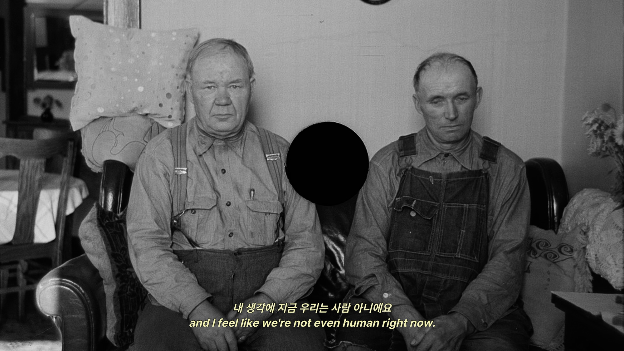 What matters now is not the photograph, but the event. The task ahead is not to look at photographs as photographs, but to construct the conditions and contexts through which photographs may generate events of their own. This film comprises four primary elements: archival photographs from the FSA project; footage of the Pung-dong redevelopment struggle; footage from the “Movement Against Publishing Yun Geum-i’s Body”; and interviews with migrant workers who fought for years at Myeong-dong Cathedral. As these images and sounds constantly intervene in one another, the film experiments throughout its timeline to determine under what conditions, and in what forms, an event becomes possible.