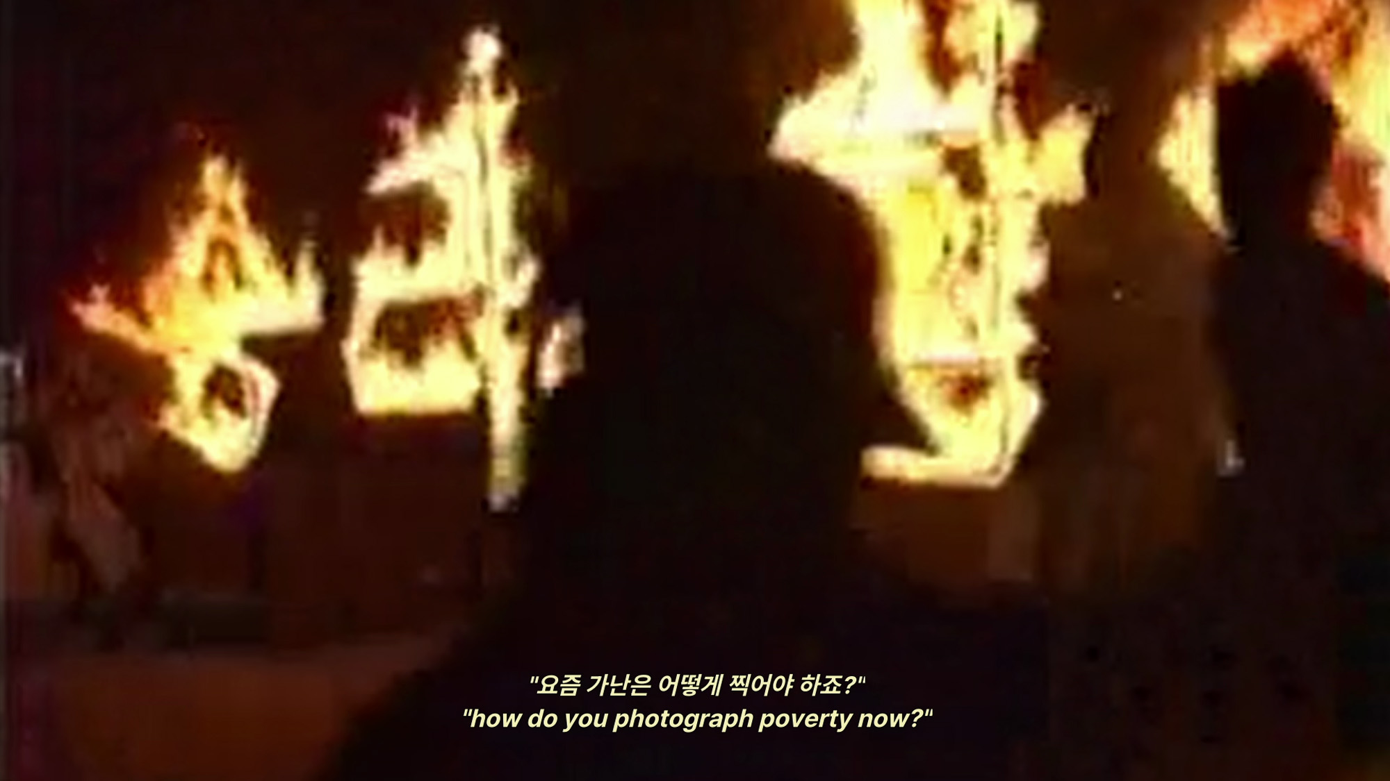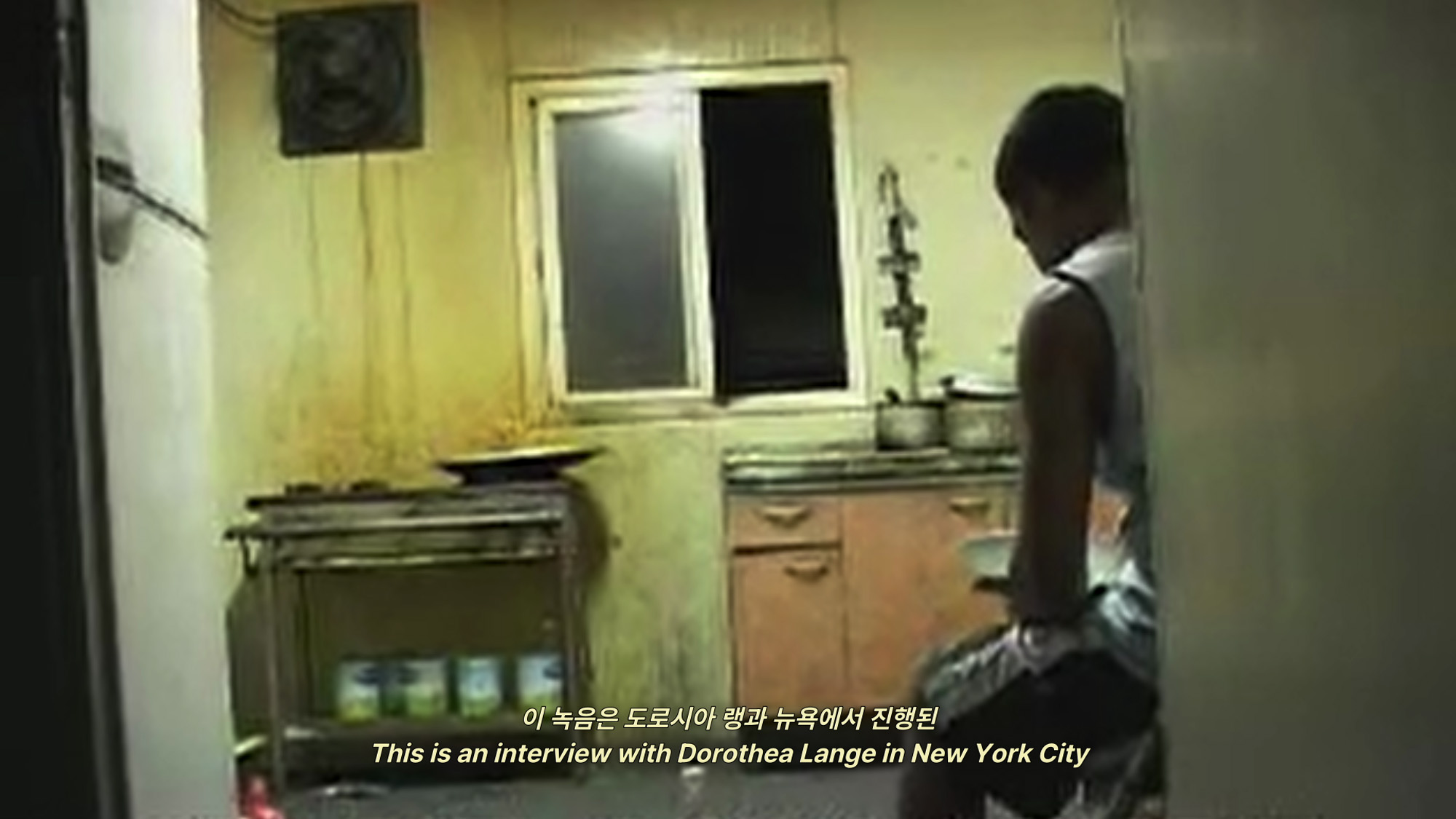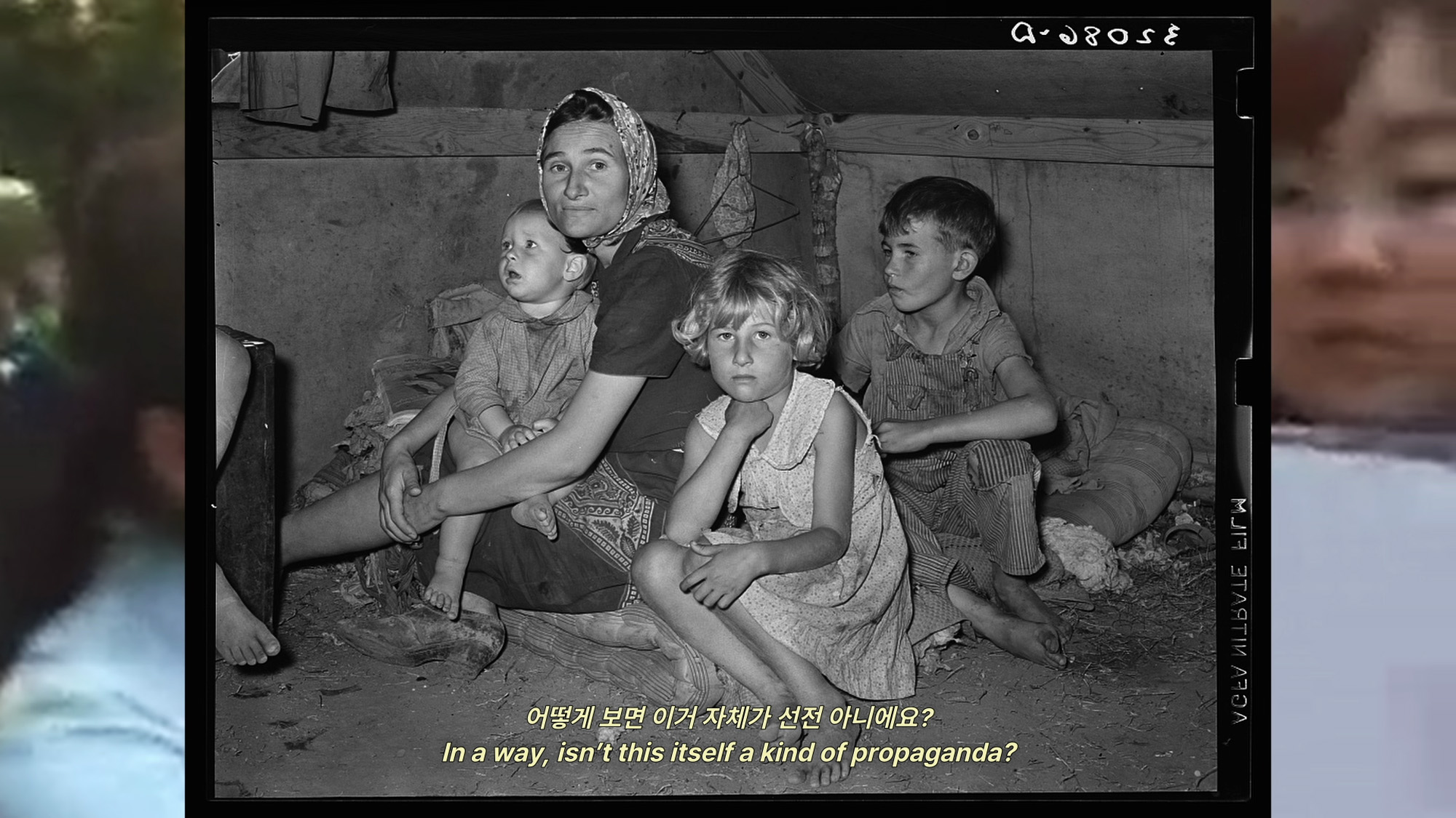 What matters now is not the photograph, but the event. The task ahead is not to look at photographs as photographs, but to construct the conditions and contexts through which photographs may generate events of their own. This film comprises four primary elements: archival photographs from the FSA project; footage of the Pung-dong redevelopment struggle; footage from the “Movement Against Publishing Yun Geum-i’s Body”; and interviews with migrant workers who fought for years at Myeong-dong Cathedral. As these images and sounds constantly intervene in one another, the film experiments throughout its timeline to determine under what conditions, and in what forms, an event becomes possible.